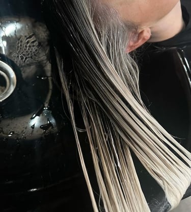Basin Balayage is a technique for refreshing or brightening blonde hair, particularly faded balayage, where lightener is hand-painted onto wet hair at the basin area.