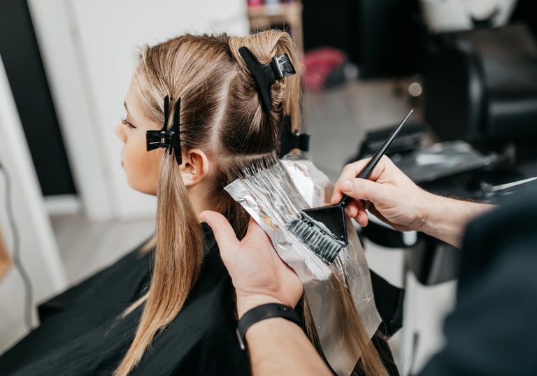 Hairline tint refers to a technique in hair colouring where a darker colour is applied to the outer part of the hair strands, enhancing the existing colour without altering the inner layers.